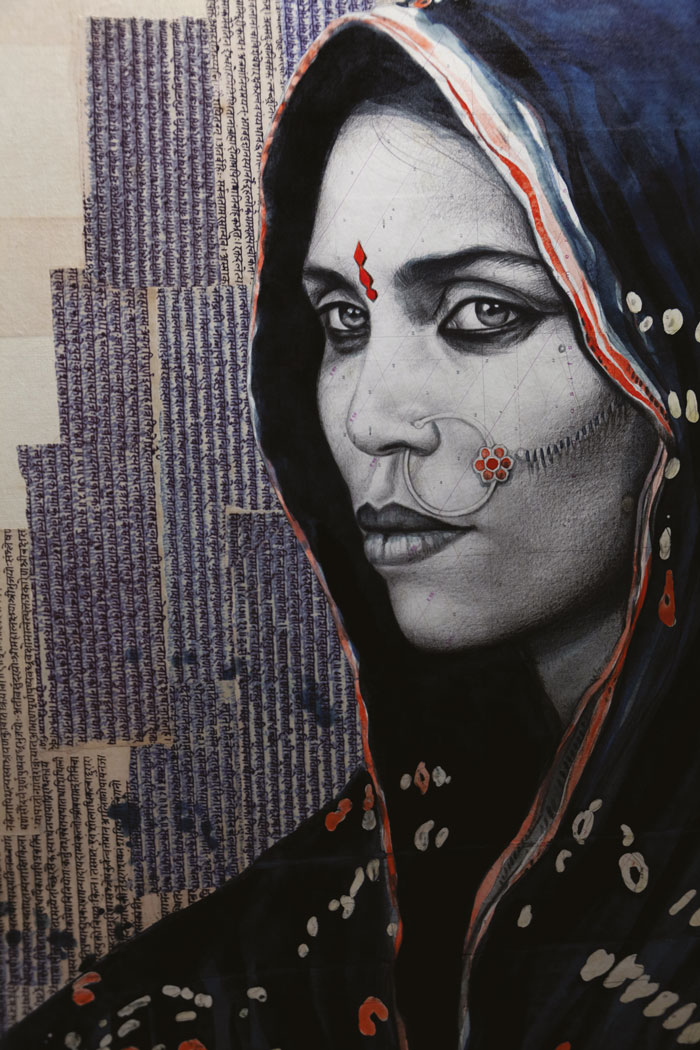 Stéphanie Ledoux crée à travers de multiples techniques : collage, dessin, encre, aquarelle, acrylique, linogravure et peinture à huile. Une diversité qui permet à l’artiste d’éviter la répétition, néanmoins les étapes de créations forment un schéma proche du rituel. « Tout part d’une rencontre sur le terrain, un coup de cœur. Je discute, j’essaye de comprendre leur culture et de mieux connaitre leur quotidien. Une fois en confiance et qu’ils me donnent leur aval, je réalise un croquis, qui prendra véritablement vie sur un plus grand format dans mon atelier. » La passionnée de voyages enchaine : « Je me souviens d’une rencontre marquante… Une tatoueuse de 103 ans qui vivait aux Philippines. Pour rendre notre rencontre davantage marquante, elle a tenu à me tatouer. J’ai évidemment accepté », s’amuse-t-elle. Avec à son actif plusieurs centaines d’œuvres et quelques dizaines d’expositions, la globe-trotteuse ne fait pourtant que commencer son aventure :