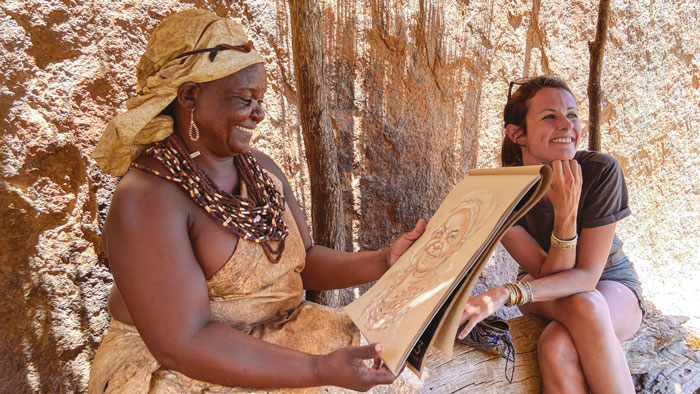 Les Namibiens sont conquis par le travail de l’artiste toulousaine. Un moment de complicité volé sur le terrain et des sourires communicatifs.