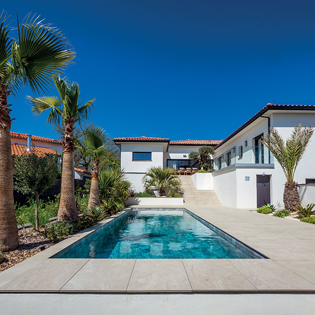 Sobriété et confort thermique. La question du confort a été abordée dans une logique de régulation passive. Plutôt que d’installer une climatisation, Gabrielle Vinson a préféré travailler sur la gestion des apports solaires et de la ventilation naturelle. Stores, pavés de verre isolants et brasseurs d’air au plafond du salon permettent de maintenir un équilibre thermique tout au long de l’année. La maison dialogue ainsi avec son environnement, exploitant la lumière et les flux d’air pour s’adapter aux saisons.