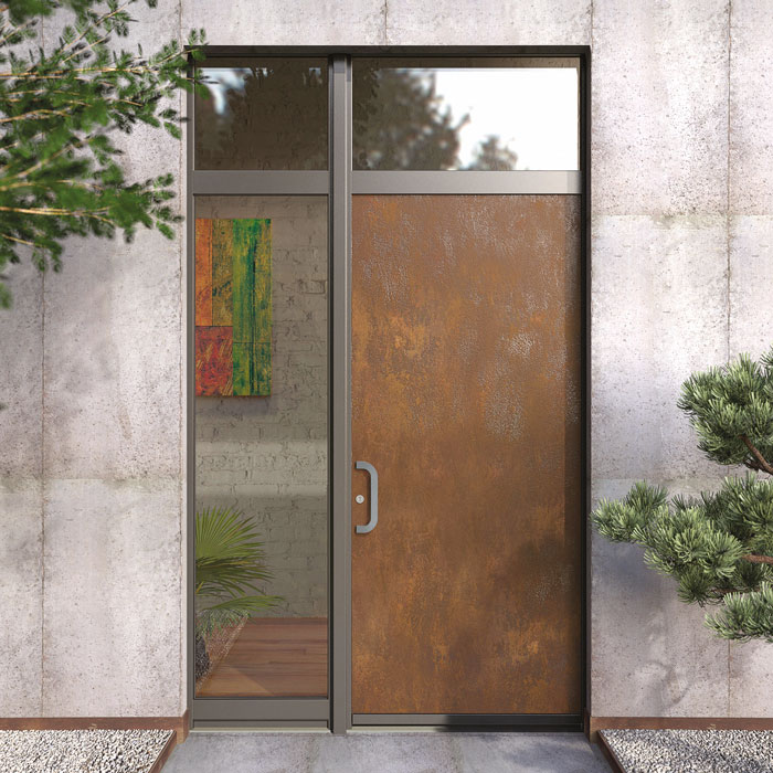 La porte en céramique. Difficile de résister à cette matière inédite en porte d’entrée ! La surface fait appel à (presque) tous les sens : les panneaux sont fabriqués dans des plaques de céramique de plus de deux mètres carrés. Le jeu caractéristique des teintes est lié au matériau. Il naît d’un processus de fusion et non d‘un marquage. On peut ainsi percevoir sous ses doigts d‘authentiques reliefs qui reflètent différemment la lumière tout au long de la journée. La céramique vient en parement intérieur et/ou extérieur sur une structure en PVC et/ou en alu. Modèle Céramica de Finstral.