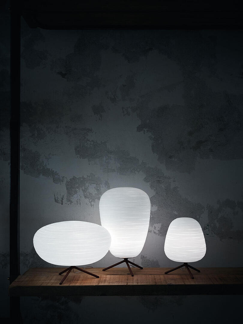 Les lampes Rituals de Foscarini parlent le langage de la beauté et de la poésie. Le verre soufflé à la bouche est caractérisé par de fines incisions qui évoquent précisément les traces d’un polissage artisanal. À partir de 340€.