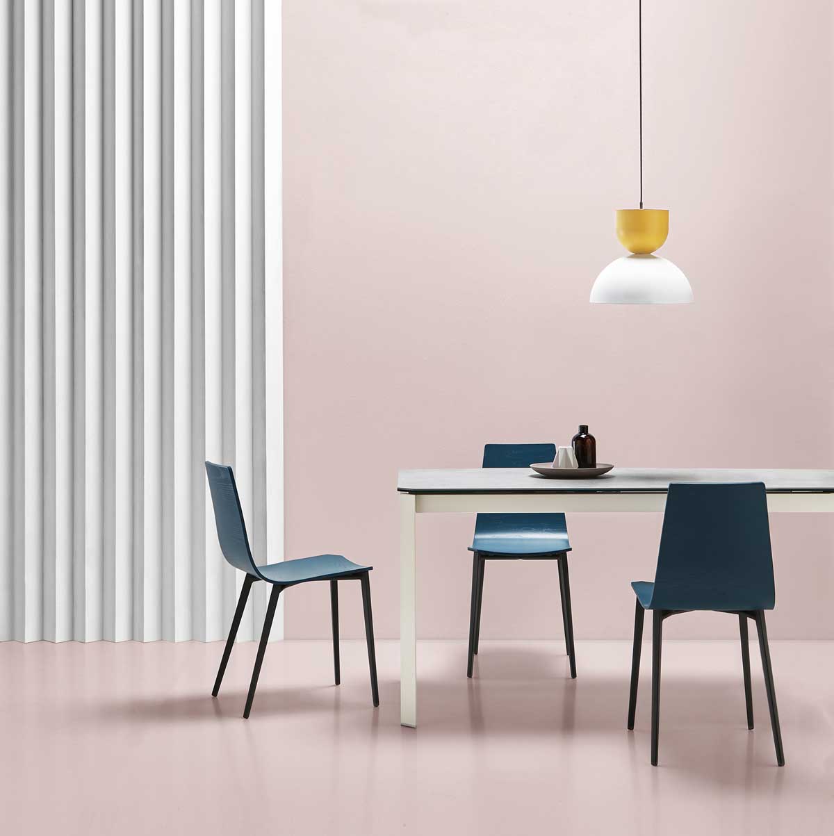 Chaises Edito en polyuréthane et pieds en métal. À partir de 287€.