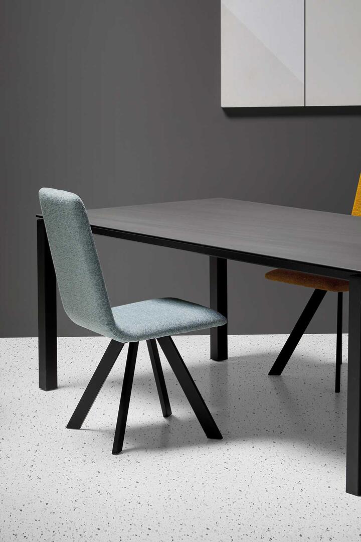 Chaise Vulcano de Mobliberica en tissu et pieds en métal. À partir de 268€.